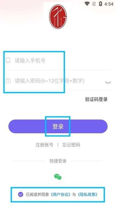 ·请勾选【已阅读并同意】选项,接着输入您的手机号和密码,最后点击【登录】按钮。