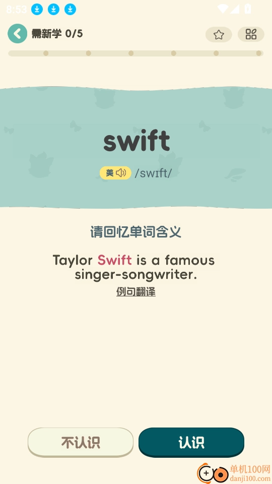 6、如此就可以记忆背诵单词了,点击“认识”按钮进行下一个。