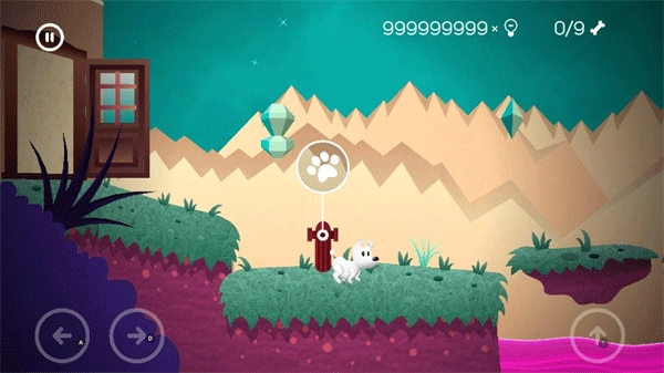 1、游戏里玩家得用下方的方向按钮操控小狗移动,而且前进过程中场景里会冒出各种困难,因此玩家还得好好收集并利用那些道具,助力我们顺利前进。