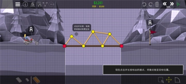 值得一提的是保利桥2游戏的玩法非常有趣,而且游戏的操作难度非常简单容易,在游戏中玩家只需要控制好角度和线条将桥建好,就可以让车辆安全的行驶过去。当然游戏的难度会随着关卡的提升变得越来越难,而不同的材料建造的桥梁强度是不一样的,但是所用的材料越少,最后的得分也就越高。不仅如此,游戏将教育和娱乐完美的结合在了一起,并将出色的物理引擎和卡通的现实世界物理规则结合,提供给玩家一个充分发挥想象力的创意空间。