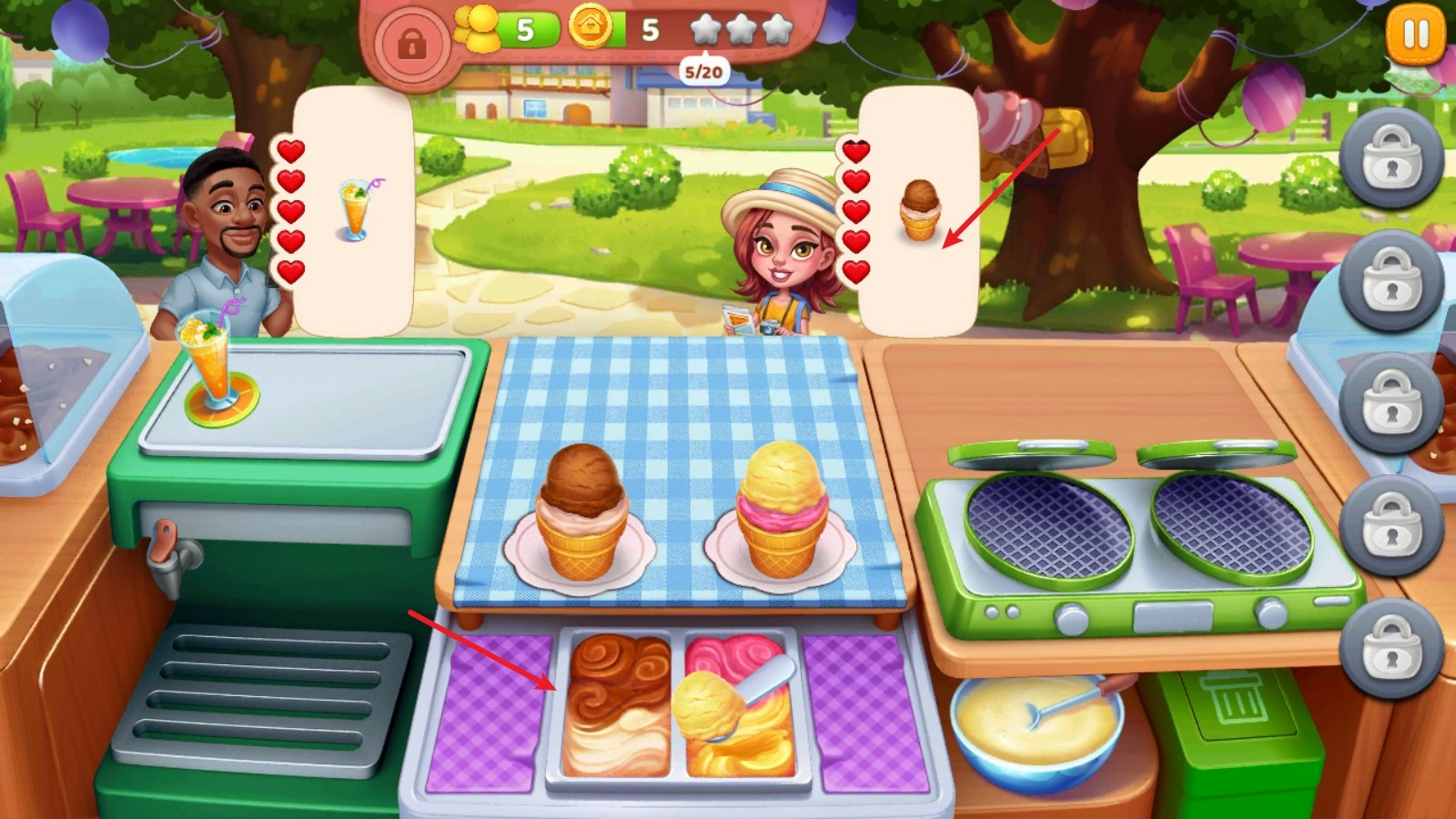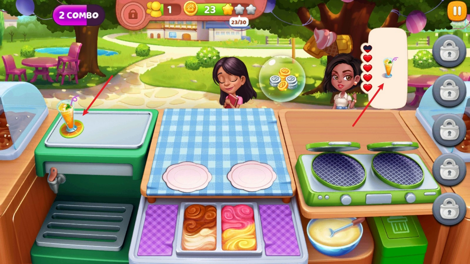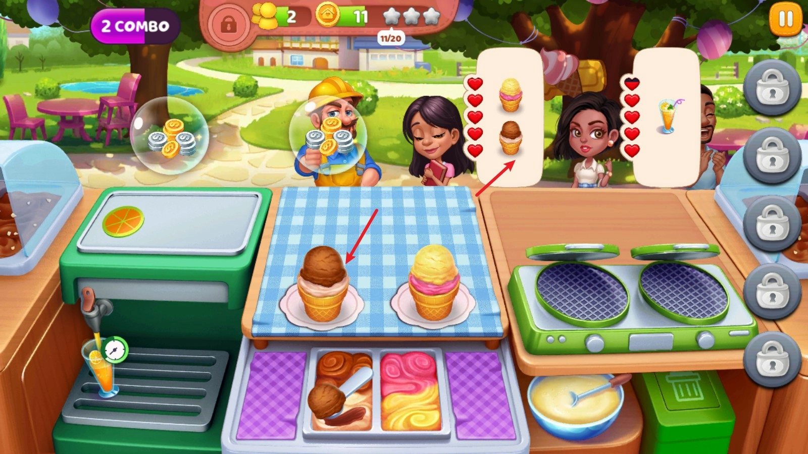 5、制作完成后点击冰淇淋即可送给对应的客人。