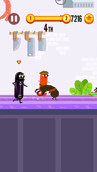 与多数跑酷游戏中常见的陷阱、栅栏类障碍不同,这款游戏加入了大量独特又“残忍”的道具——碎肉机、锤子、锯子等层出不穷。一旦操控稍有失误,香肠就可能被搅得四分五裂,或是被直接切成两段。玩家在穿越无尽跑道的过程中,既能被形态各异的卡通香肠形象萌到,又能充分体验障碍跑道带来的惊险与刺激!