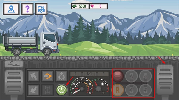 2、点击启动按钮,挂挂上相应的档位,点击加速踏板,在此过程中,你必须要熟练掌控车速以及上坡时候的档位调节,才能成功将运货成功。