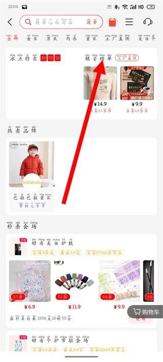 2、在选品页面中,选择销量榜单分类,进入销量榜单页面。