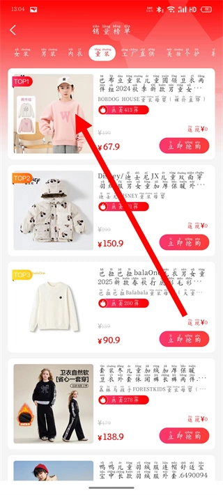 3、在销量榜单页面,选择目标商品,点击进入商品详情页。