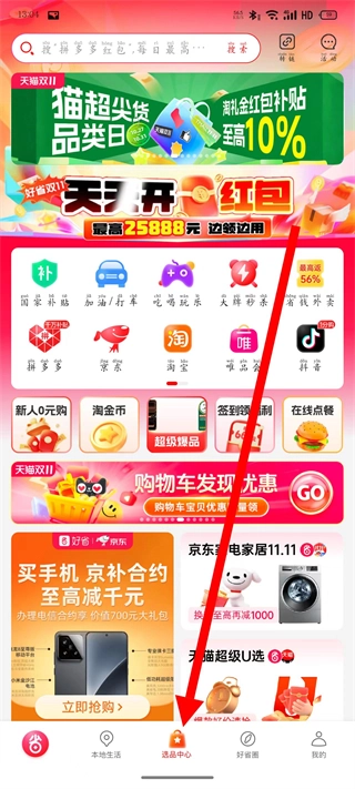 1、打开好省购物平台,点击底部导航栏中的选品中心,即可进入选品页面。