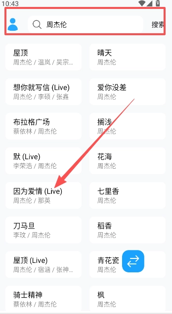 2、内容搜索栏输入歌曲名称或是歌手信息,点击搜索。