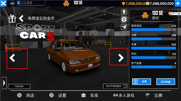 2、接着在车库中选择并购买一辆心仪的车辆吧,点击左右两侧即可切换