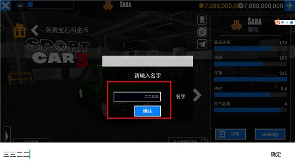 1、安装并进入游戏后,首先给自己取个响亮的名字吧,像下图展示的那样:就能购买车辆了。
