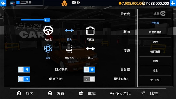 3、打开设置,还可自由设置车辆灵敏度、转向、变速等功能