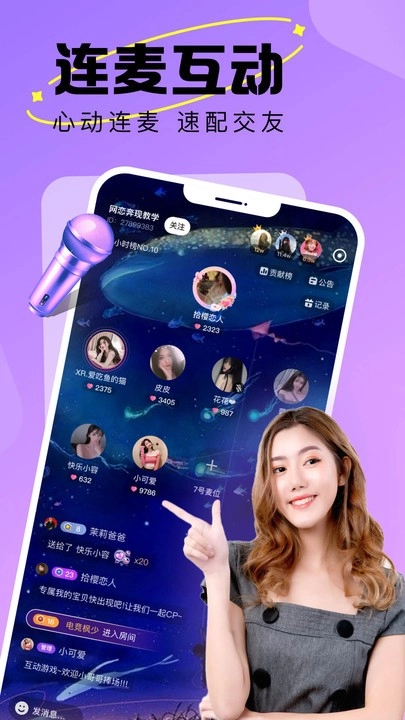 1、提供免费语音连麦服务,支持互动聊天,还有众多声优在线陪伴聊天;