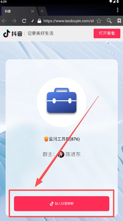 2、点击作者主页发布的抖音群聊,加入就行。