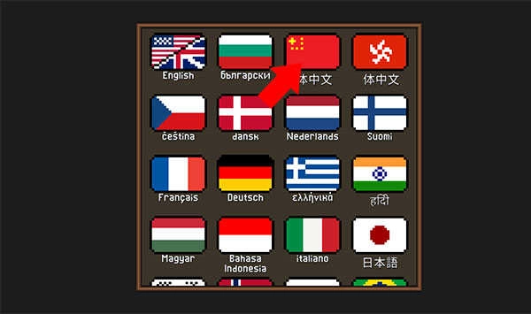 1、首次进入游戏时,系统会提示玩家选择语言,找到对应简体中文的国旗选项并点击即可完成设置