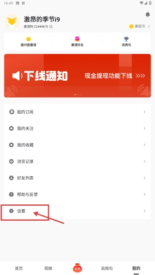 2、在个人中心页面,选择设置选项,进入设置界面。