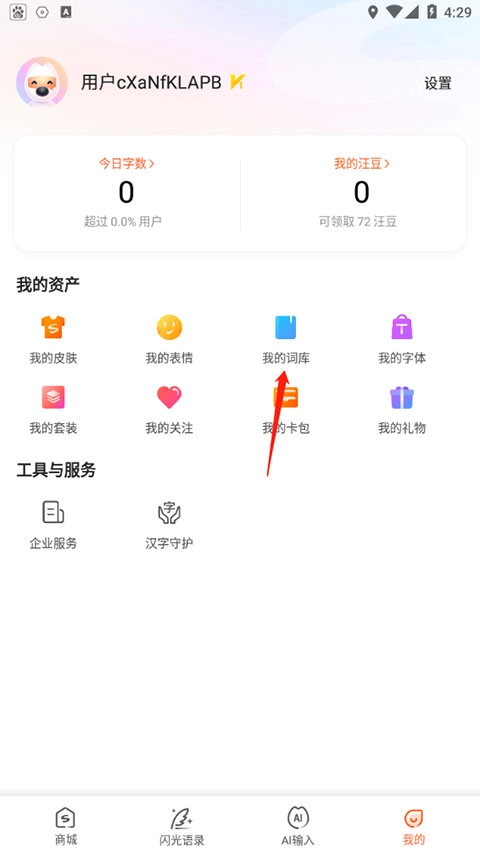 1、启动搜狗输入法后,找到并点击“我的词库”选项。