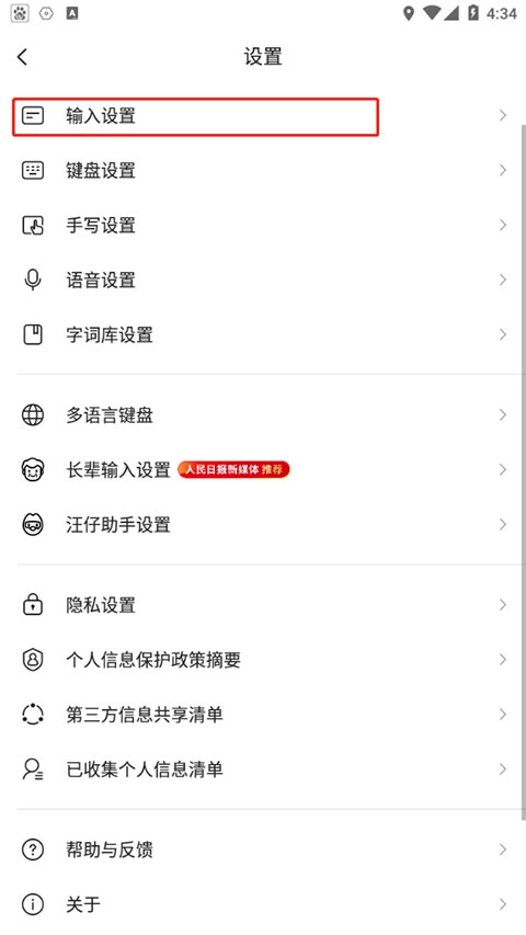 2、选择输入设置选项。