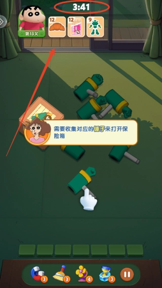 3、进入游戏后,需依据各关卡的要求完成收集任务,界面上方显示的是该关卡的限时倒计时。