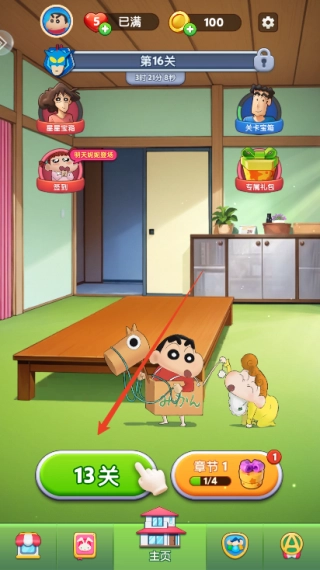 1、打开游戏后,点击关卡即可开启闯关挑战。