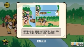 第六关帮助所有人过河:直接把八戒的耙子拉倒对面。