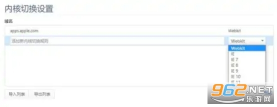 右侧的WEBKIT选项,接着选择需要兼容的IE浏览器版本,就能完成360浏览器兼容模式的设置。