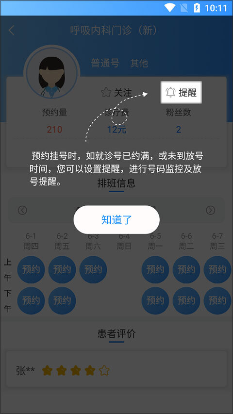 5、若诊号已约满,或尚未到放号时间,您可以设置提醒,对号码进行监控并接收放号通知。
