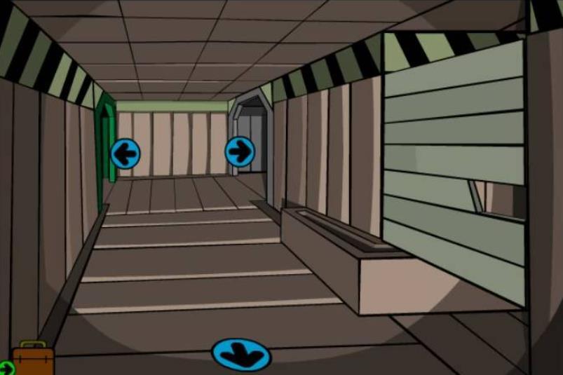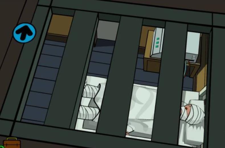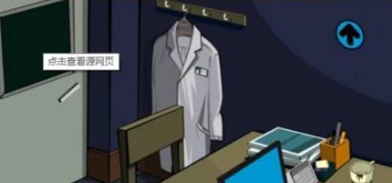 10.点右上箭头,点天花板上的通风口,进入天棚,打开工具箱,点遥控器,点使用,看剧情动画。后退2次,点向右箭头,点隔板处向右的箭头,再点向右的箭头,进入黄色区域,点通风口2次,进入医生房间,点向下箭头,拿墙上挂的白大褂,点门离开医生房间。
