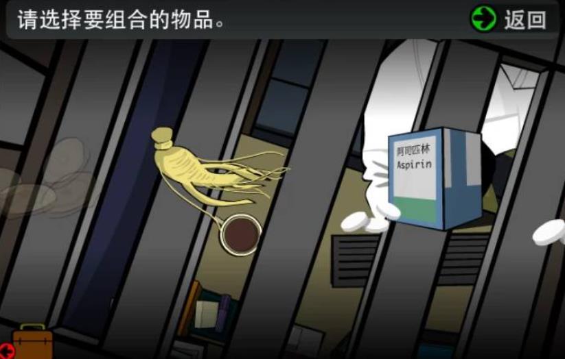 8.后退,点右上箭头,点天花板上的通风口,进入天棚,点右侧箭头,点下面箭头,点向右的箭头,进入黄色区域,点地上的通风口2次,进入医生房间的上方。打开工具箱,点甘草,点组合,点阿司匹林,把甘草和阿司匹林混合,点混合物,点使用,看剧情动画,混合物被放入医生的咖啡内,医生喝掉咖啡。