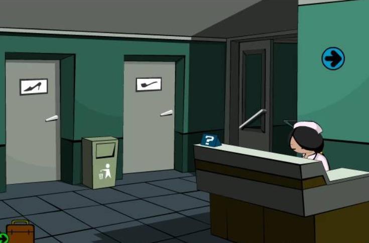 2.看到厕所.服务台和另一个门,玩家随意任选门或者男厕进入再返回,会出现剧情CG,护士小姐会到服务台,此时点击护士小姐,她会认为主角是电气修理工,然后给主角一把钥匙。