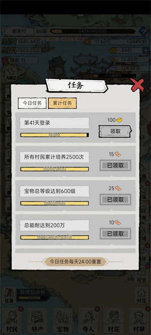 2、培养一个村民20次就可以满级,这是为了提高基础属性,不要一级也不升,觉得有宝物就行了,宝物是会被带走的