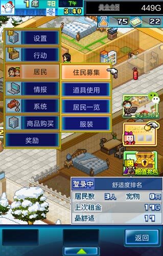 前期若舒适度不足,切勿尝试招募需要100研究点的房客。因为前期设施等级较低,所能增加的舒适度有限。待经过一段时间,设施等级提升,专用房间数量增多后,再去招募这类房客。建议在舒适度达到80左右时进行招募,运用SL大法,即在招募前先存档。招募时间最好选在凌晨休息日,如此早上9点左右房客便会前来查看房屋,无需长时间等待。