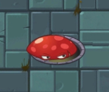 克制:平顶菇可种在下水道处盖住下水道,使其暂时失去传送功能。若种植时已有僵尸进入,平顶菇会逐渐被下水道中的僵尸拉扯破坏掉。