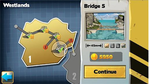 2、在修建桥梁的过程中,针对桥梁的每一段,您都能够选用不同的材料,像木头、钢筋、钢索或者混凝土支柱等,而且可以自由地对不同建筑材料进行组合搭配(不过,唯一的限制因素就是您的预算)。