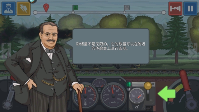 4、此刻火车已经开动,途中我们遭遇了爬坡困难的状况。不过别担心,我们能够借助黄色拉杆,利用砂子来增强火车的摩擦力。