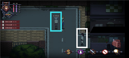 然后在初始地点先直走,可以看见两个女学生。白色框框起来那个是毫无用处的,而蓝色框框起来的可以在过了社交判定之后给一条普通线索和一条思考线索。