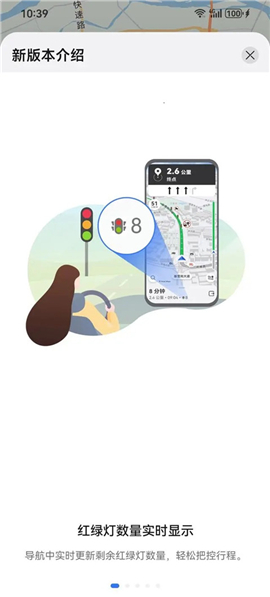 1、红绿灯数量实时显示:导航中可实时显示剩余红绿灯数量。