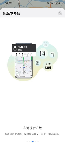 3、车道提示升级:支持实时展示公交、可变、潮汐车道。