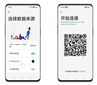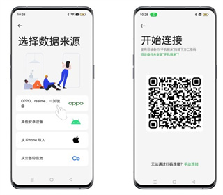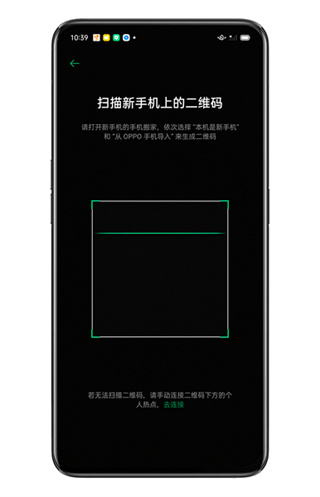 1、当新手机进入「APP > 选择本机类型 > 本机是新手机 > 从OPPO手机导入」流程后,系统会生成二维码。