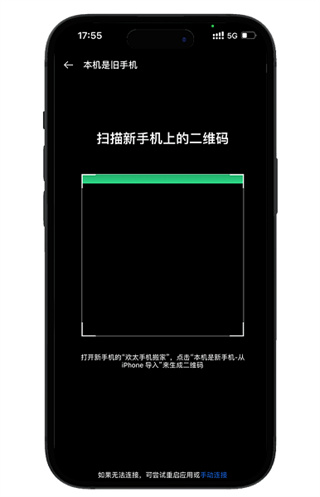 2、在旧手机上依次点击「APP > 选择本机类型 > 本机是旧手机」,随后扫描新手机上的二维码。