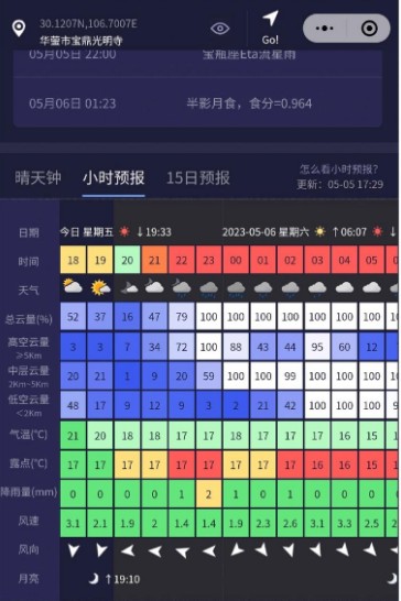 一般24小时内的预报相对准确(除非台风等特殊气象因素),时间越往后越可能偏差,因此天文通最多提供了3日的观星指数。