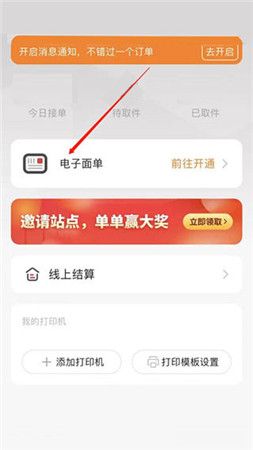 3、完成认证后,进入首页点击电子面单选项