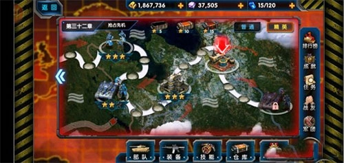 战役系统属于PvE玩法中比较重要的一个,玩家通过战役副本,深入到世界观之中,并且通过积累不断的提升自身实力。在进入战斗之前,可以自由选择主力兵种阵容、支援兵种阵容、技能序列。进入战斗之后,可以通过时间慢慢积累能量值,或者通过击杀敌方获得能量值,等待能量值到达一定数量,便可通过消耗能量值召唤支援兵种,或者使用技能。