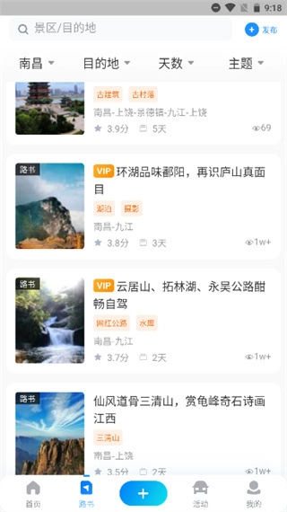 3、点击进入路书导航,你可以筛选出发地、目的地和行程天数,查看推荐的路书;