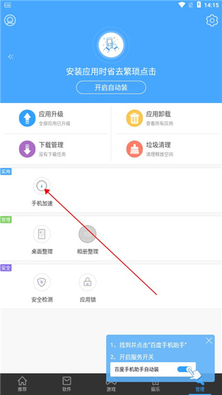 2、点击开启自动装,用户在下载安装应用游戏是就可以一键直接安装。