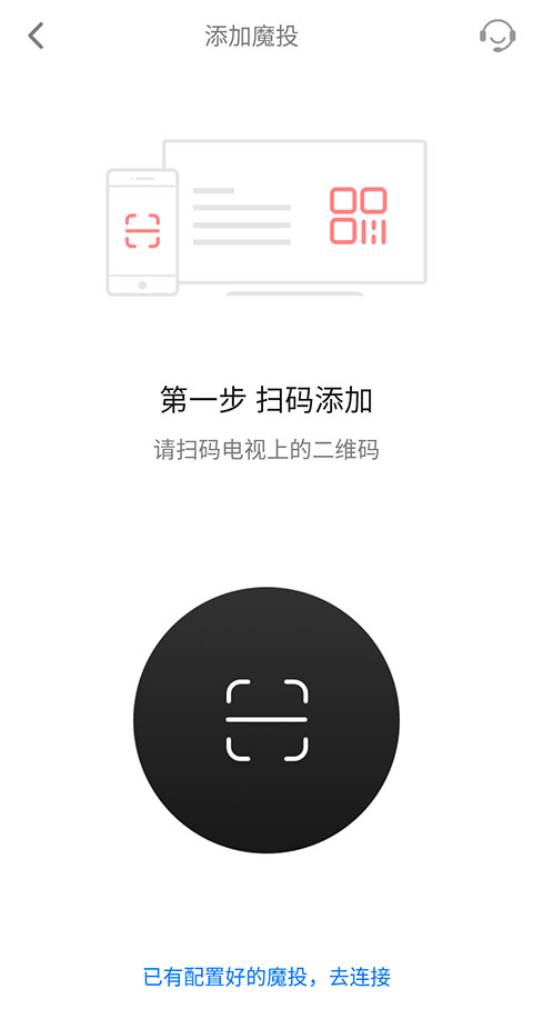7、倘若通过上述方法未能成功连接魔投设备,也能够尝试使用【扫码添加】功能,即扫描电视上的二维码来实现连接。