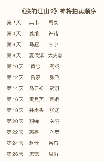 除非你是神级土豪,总归还是希望用最少的钱排到最好的武将(平民玩家就更是如此)。所以,在这里也有一些拍卖时的小技巧: