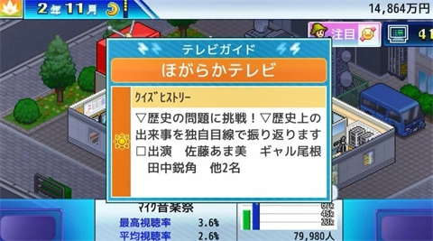 2、多种随机的事件与剧情,可开发的电视台剧情和内容变多,解锁最人气的职员,成为传媒界翘楚。