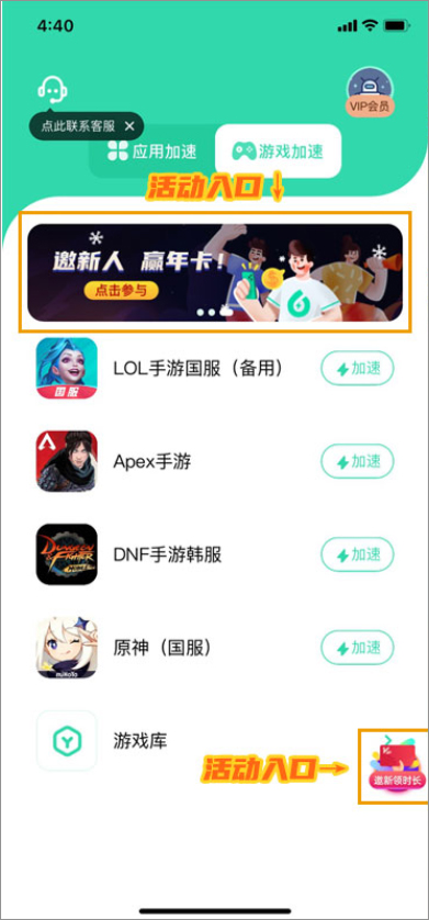 若出现此错误,可尝试点击会员中心,确认当前账号的会员是否到期。VIP会员支持应用加速,SVIP则支持应用与游戏加速。另外,也可手动切换加速线路试试。