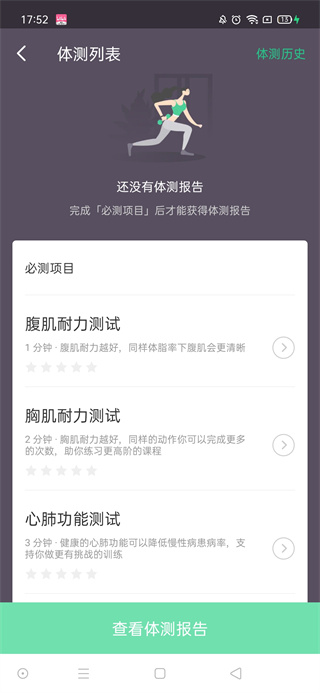 3、最后,只需在【个人中心】里选择【身体测试】,接着点击【体侧列表】下方的【查看体测报告】就行。