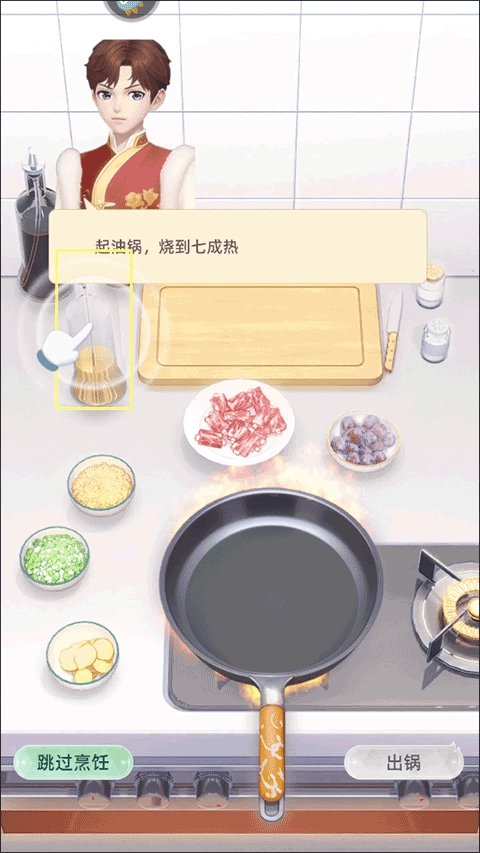 8、在这里依次把作料等加下去后等待一会儿就可以选择并点击“出锅”的选项了;