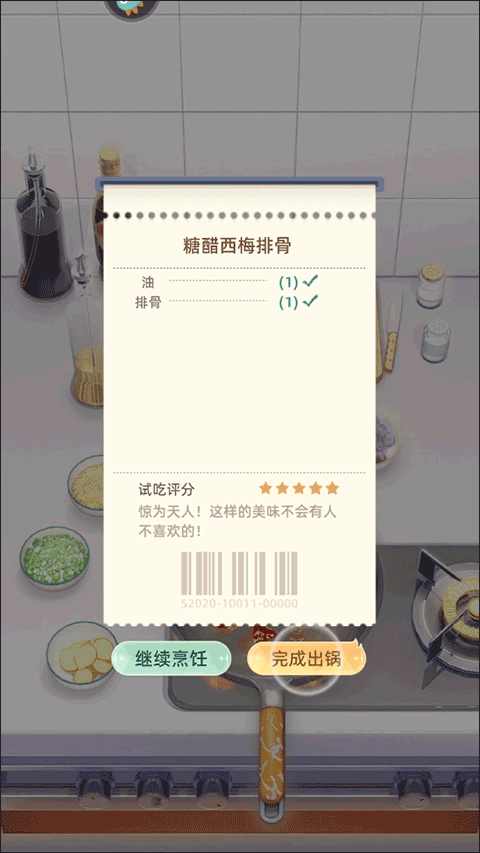 9、现在,玩家就可以通过选择并点击“完成出锅”的选项来完成了第一份烹饪的任务了;